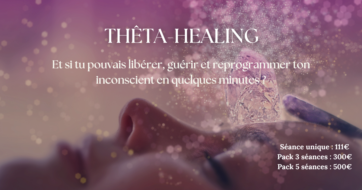 Le ThêtaHealing est une technique de transformation intérieure douce et puissante, qui agit directement sur les croyances profondes et les programmations inconscientes. En accédant à l’onde cérébrale Thêta, celle des états méditatifs profonds, on peut identifier, libérer et reprogrammer les blocages qui limitent ta vie (liés à l’amour, l’argent, la santé, la confiance, les relations, etc.).Le ThêtaHealing n’est pas une baguette magique. Mais c’est un accélérateur puissant de transformation, si tu es prête à dire OUI à ta vie.
