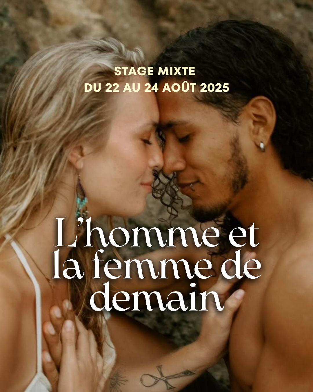 Un espace thérapeutique pour explorer la rencontre entre le masculin et le féminin, en soi et avec l’autre. Pendant 2 jours, hommes et femmes se rassemblent pour libérer les blessures relationnelles, comprendre les dynamiques invisibles qui nous gouvernent, et retisser du lien vrai, puissant, conscient. Un stage où chacun(e) revient à l’essentiel : la connexion, la vérité, l’amour aligné.