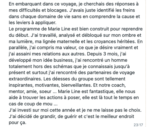 Parce qu’il ne s’agit pas seulement de “travailler sur soi”. Il s’agit de redevenir une femme-souveraine, rayonnante et pleinement vivante.